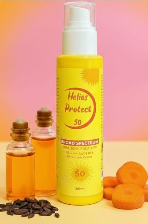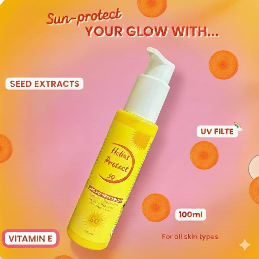Helios Protect Sunscreen SPF 50+ with Niacinamide & Vitamin E provides broad-spectrum protection against UVA & UVB rays. Its lightweight, fast-absorbing formula helps even skin tone, nourish the skin barrier, and boost natural radiance. Suitable for all skin types, it blends seamlessly with no white cast for comfortable daily wear.